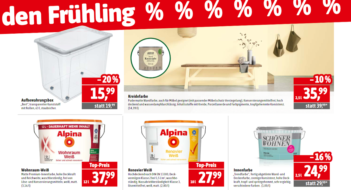 ![]() Wir mischen Ihnen jeden Lieblings-Farbton nach Wunsch. Und sollte er noch so ausgefallen sein. Über 10.000 Farbtöne – da ist Ihr Farbwunsch garantiert dabei. Und Sie können Ihre Farbe auch direkt mitnehmen und zu Hause loslegen.